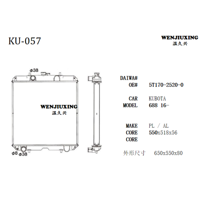 5T170-2520-0适用于久保田688拖拉机散热器